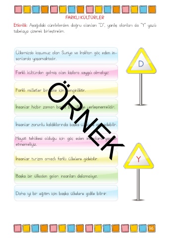 Etkinlik: Aşağıdaki cümlelerden doğru olanları “D”, yanlış olanları da “Y” yazılı