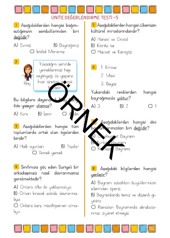 ÜNİTE DEĞERLENDİRME TESTİ -5
