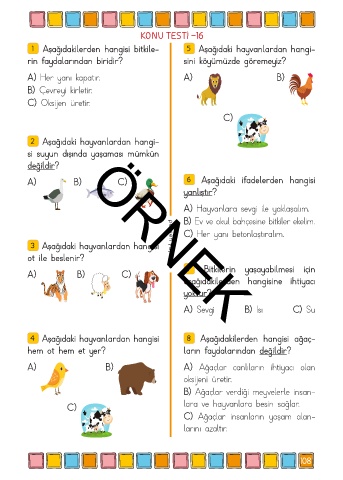 1 Aşağıdakilerden hangisi bitkile- 5 Aşağıdaki hayvanlardan hangi-