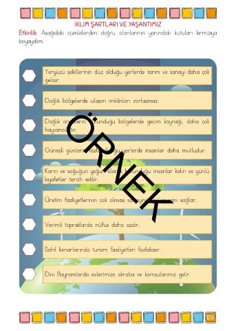 Etkinlik: Aşağıdaki cümlelerden doğru olanlarının yanındaki kutuları kırmızıya