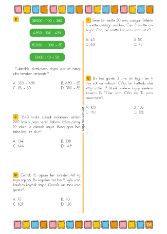 8 38 000 : 100 = 380 11 Selen bir saatte 30 soru çözüyor. Selen’in