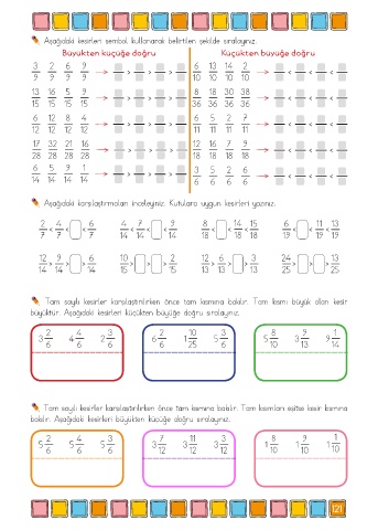 bakılır. Aşağıdaki kesirleri büyükten küçüğe doğru sıralayınız.