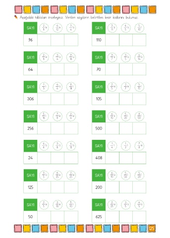 Aşağıdaki tabloları inceleyiniz. Verilen sayıların belirtilen kesir kadarını bulunuz.