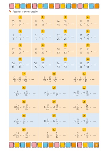 36 + 42 = 54 - 23 = 24 - 19 = 14 + 35 =