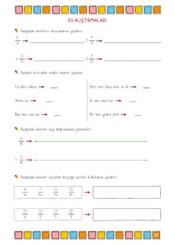 Aşağıdaki kesirlerin okunuşlarını yazalım.