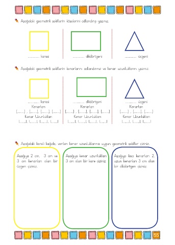 Aşağıdaki geometrik şekillerin kenarlarını adlandırınız ve kenar uzunluklarını yazınız.