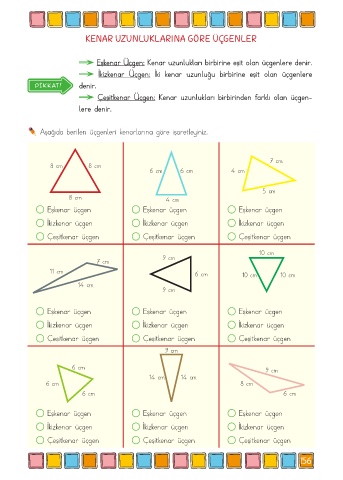 Aşağıda berilen üçgenleri kenarlarına göre işaretleyiniz.