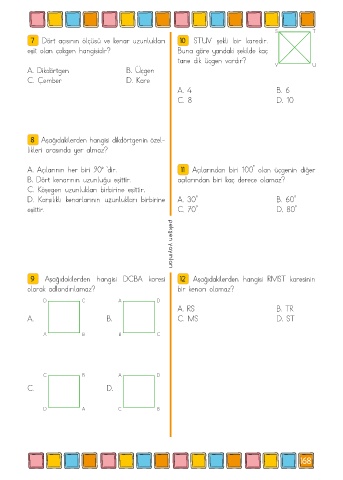 7 Dört açısının ölçüsü ve kenar uzunlukları 10 STUV şekli bir karedir.