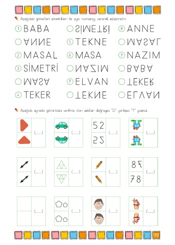 Aşağıdaki görselleri simetrikleri ile aynı numarayı vererek eşleştirelim.