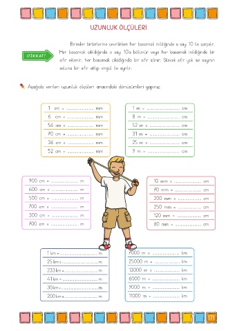 Aşağıda verilen uzunluk ölçüleri arasındaki dönüşümleri yapınız.