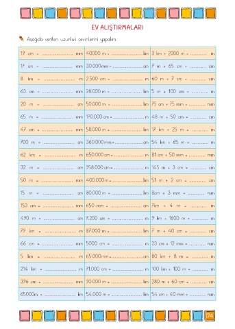 Aşağıda verilen uzunluk çevirilerini yapalım.