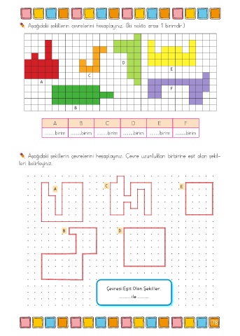 Aşağıdaki şekillerin çevrelerini hesaplayınız. Çevre uzunlukları birbirine eşit olan şekil-