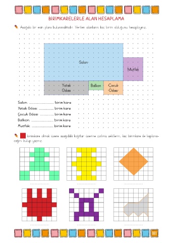 Aşağıda bir evin planı bulunmaktadır. Verilen alanların kaç birim olduğunu hesaplayınız.