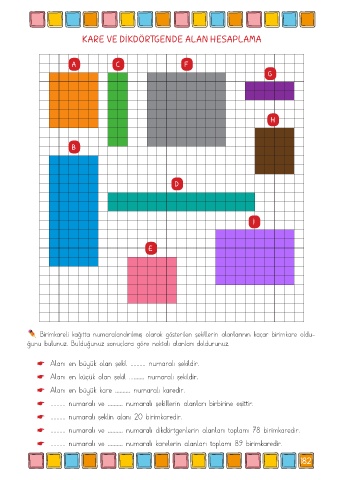 * .......... numaralı ve .......... numaralı dikdörtgenlerin alanları toplamı 78 birimkaredir.