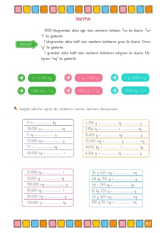Aşağıda belirtilen ağırlık ölçü birimlerini istenilen birimlere dönüştürelim.