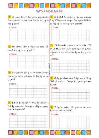 1 Bir paket bisküvi 150 gram gelmektedir. 5 Bir bakkal 25 kg olan bir teneke peynirin