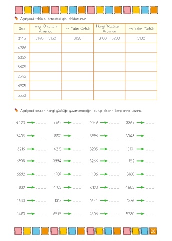Aşağıdaki sayılar hangi yüzlüğe yuvarlanacağını bulup okların karşılarına yazınız.