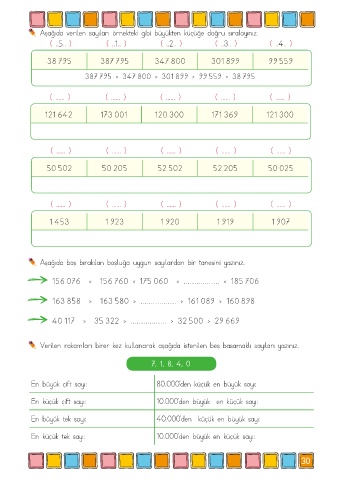 Aşağıda verilen sayıları örnekteki gibi büyükten küçüğe doğru sıralayınız.