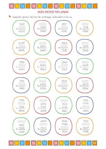 Aşağıdaki toplama işlemlerinde verilmeyen toplananları bulunuz.
