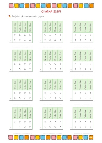 Aşağıdaki çıkarma işlemlerini yapınız.