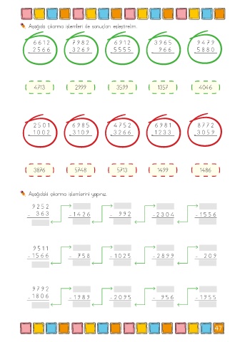 Aşağıda çıkarma işlemleri ile sonuçları eşleştirelim.