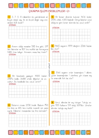 ÇIKARMA İŞLEMİ PROBLEMLERİ -2-
