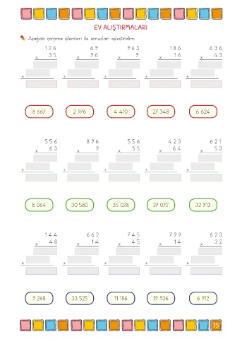 Aşağıda çarpma işlemleri ile sonuçları eşleştirelim.