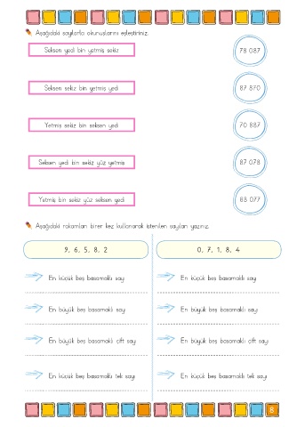 Aşağıdaki rakamları birer kez kullanarak istenilen sayıları yazınız.