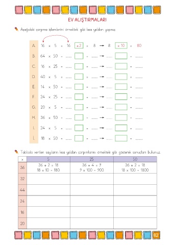 Aşağıdaki çarpma işlemlerini örnekteki gibi kısa yoldan yapınız.