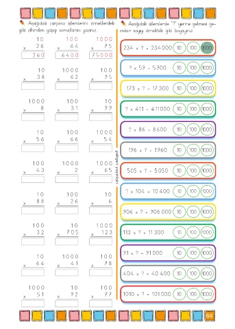 Aşağıdaki çarpma işlemlerini örneklerdeki Aşağıdaki işlemlerde “?” yerine gelmesi ge-