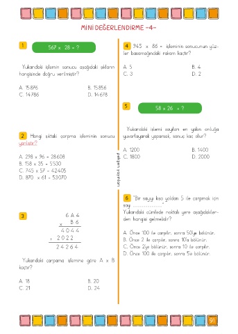 2 Hangi şıktaki çarpma işleminin sonucu yuvarlayarak yaparsak, sonuç kaç olur?