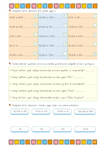 Aşağıdaki bölme işlemlerini zihinden yapıp doğru sonuçlarla eşleştiriniz.