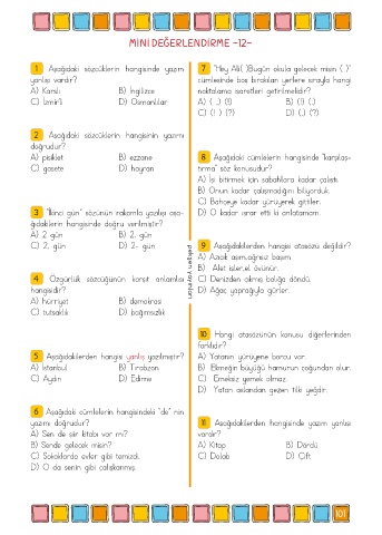 1 Aşağıdaki sözcüklerin hangisinde yazım 7 “Hey Ali( )Bugün okula gelecek misin ( )”