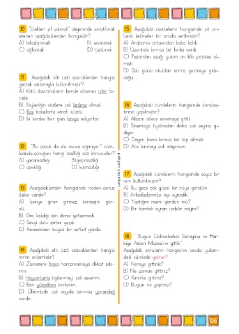 10 “Etekleri zil çalmak” deyiminde anlatılmak 15 Aşağıdaki cümlelerin hangisinde zıt an-