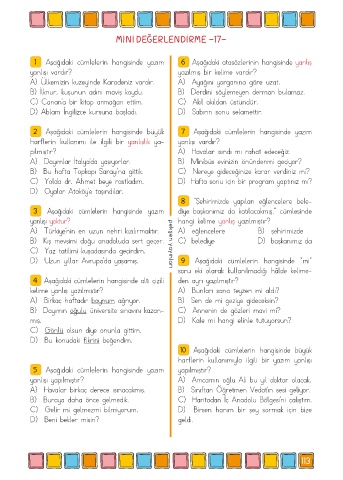 2 Aşağıdaki cümlelerin hangisinde büyük 7 Aşağıdaki cümlelerin hangisinde yazım