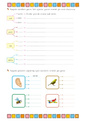 Aşağıdaki sözcüklerin yanına, farklı eylemler yazarak örnekteki gibi cümle oluşturunuz.