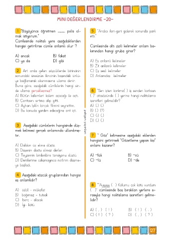 1 “Büyüyünce öğretmen …………… polis ol- 5 “Araba ileri-geri giderek sonunda park