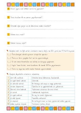 Aşağıda deyimlerle anlamlarını eşleştiriniz.