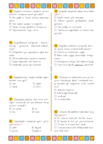 8 Aşağıdaki cümlelerin hangisinin sonuna 13 Aşağıdaki hangisinde sebep-sonuç ilişkisi