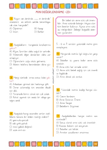 B) eski-yırtık-pahalı A) Sonuç olarak anne sütü çok önemlidir.