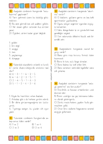 9 Aşağıdaki cümlelerin hangisinde “karşı- 12 Aşağıdaki cümlelerin hangisinde “abart-