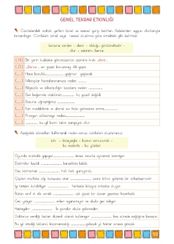 Cümlelerdeki noktalı yerleri öznel ve nesnel yargı belirten ifadelerden uygun olanlarıyla