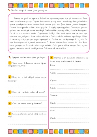 Aşağıdaki soruları metne göre yanıtlayınız. 6 Metinde geçen sözcüklerin anlamlarını söz-