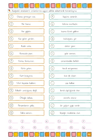 Aşağıdaki atasözlerini anlamlarına uygun şekilde eşleştirerek tamamlayınız.