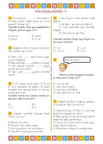 7 Aşağıdaki cümlelerin hangisinde destekleyici