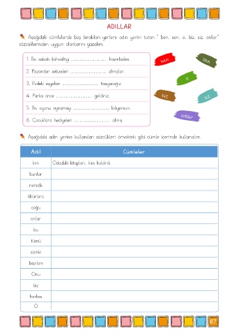 Aşağıdaki cümlelerde boş bırakılan yerlere adın yerini tutan “ ben, sen, o, biz, siz, onlar”