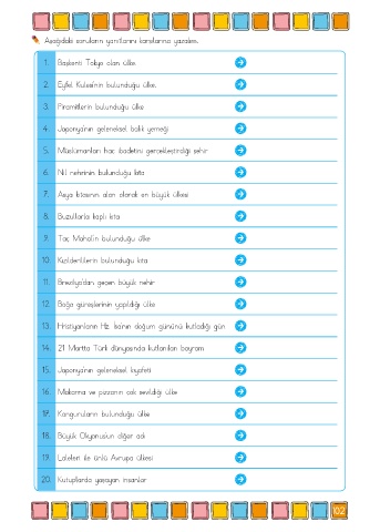Aşağıdaki soruların yanıtlarını karşılarına yazalım.