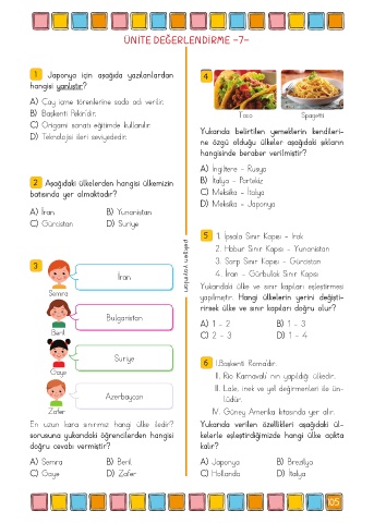 C) Gaye D) Zafer C) Hollanda D) İtalya