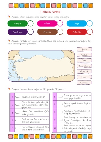 Aşağıdaki ifadelerin başına doğru ise “D”, yanlış ise “Y” yazınız.