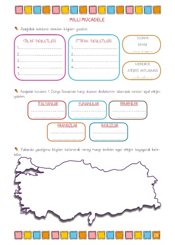 Yukarıda yazdığımız bilgileri kullanarak nereyi hangi devletin işgal ettiğini boyayarak belir-